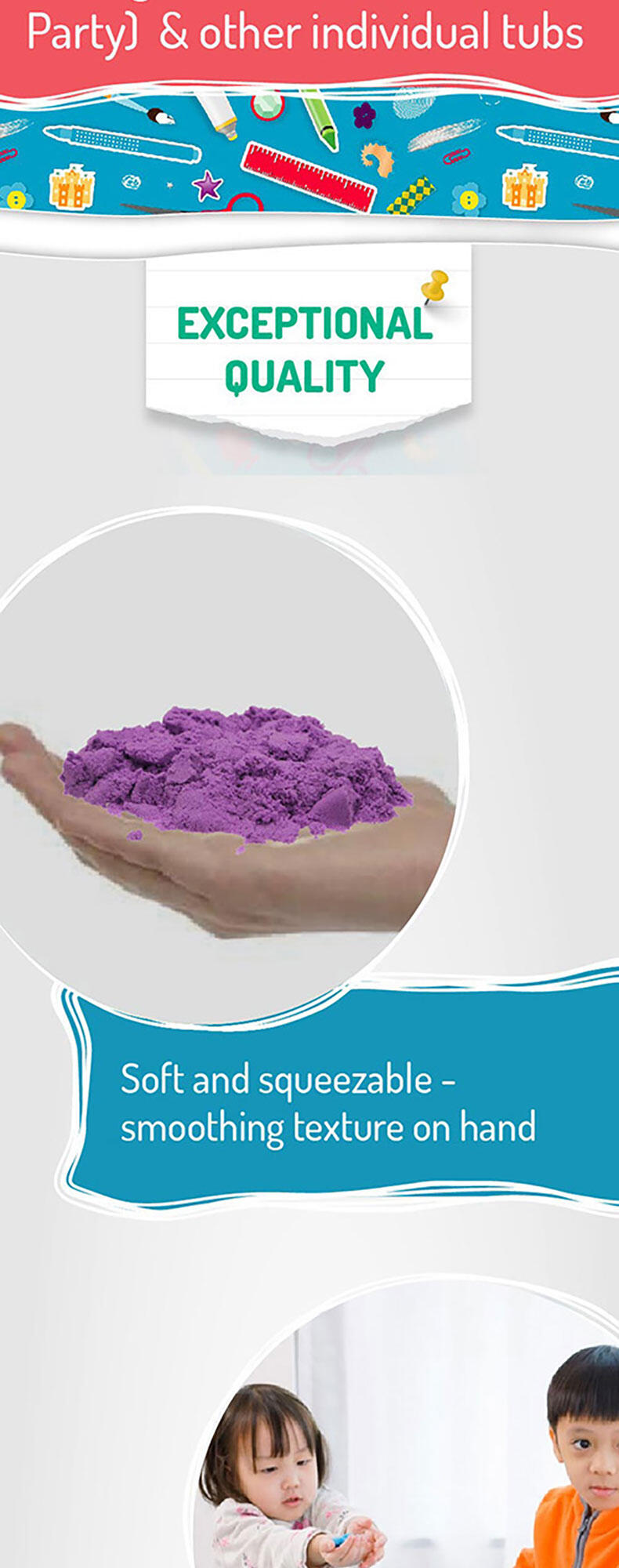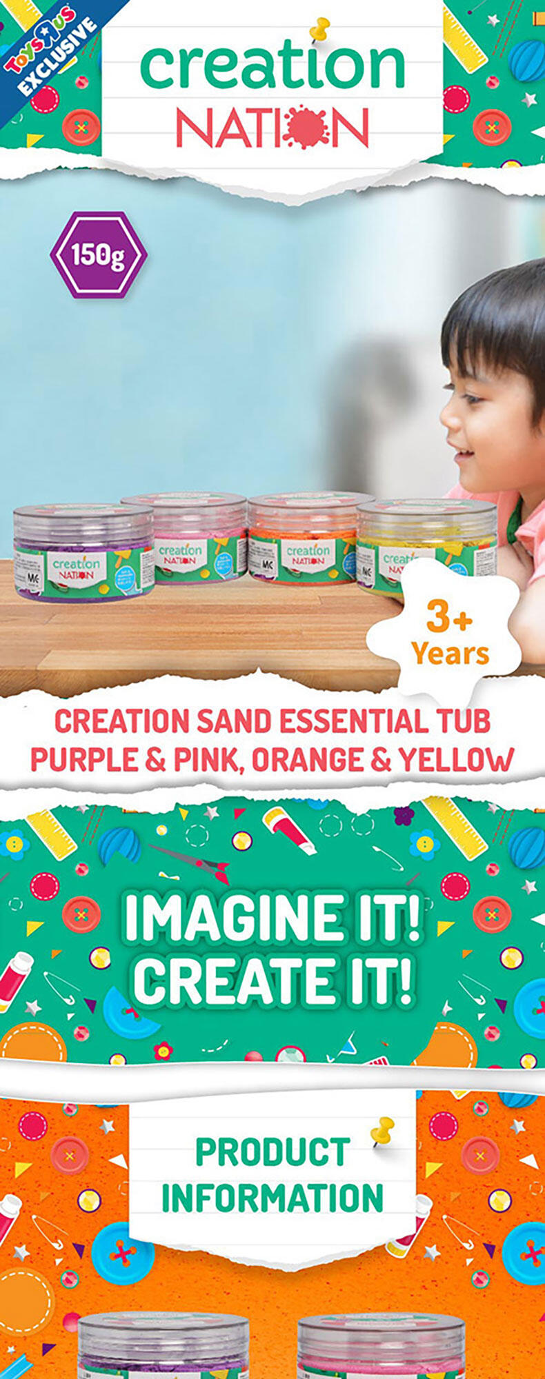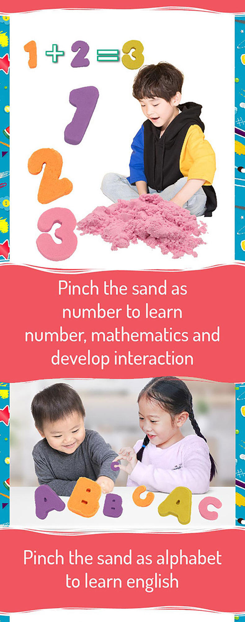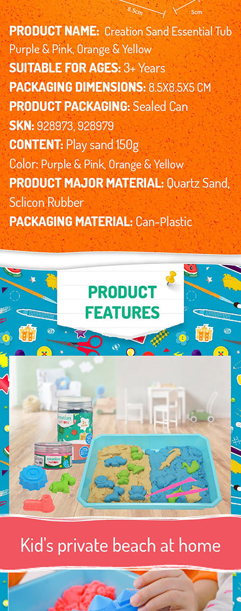 Squish, squash, squeeze! Playing with this magical, sensory-integrated Creation Sand anywhere is the new normal! It's so relaxing when this non-wet, pliable and clean Sand seeps through your fingers. And it's even more satisfying when you seize and shape the Sand to mould your multi-coloured dreamland with endless possibilities.