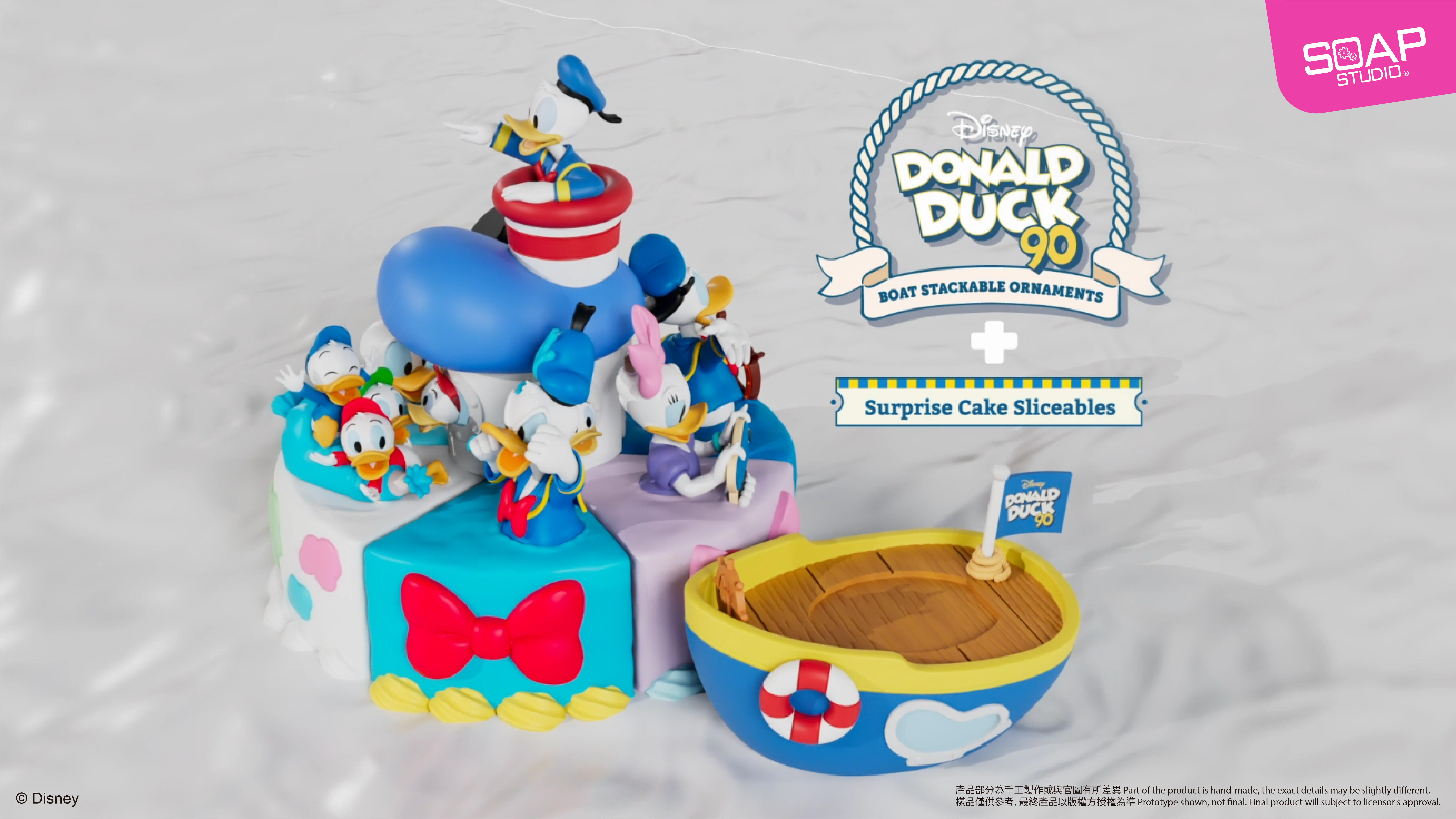 "Boat Stackable Ornaments to celebrate Donald Duck’s 90th anniversary! This Stackable Ornaments features Donald Duck's boat as the theme, using Donald Duck's classic blue, white, and yellow color scheme with full of details. Donald Duck and his nephew Huey、Dewey and Louie both are on the boat!