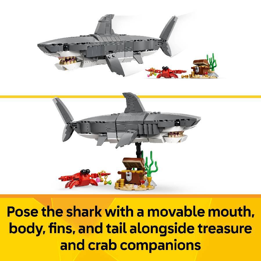 Boys and girls ages 8 and up can play out fun underwater stories with this LEGO® Creator 3 in 1 Fierce Shark with a Treasure Chest (31381) building toy. This impressive sea animal toy set offers kids 3 different building options with the same set of bricks.