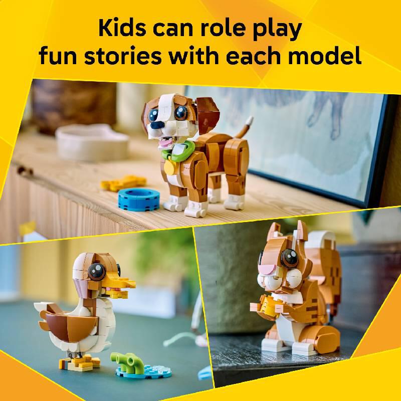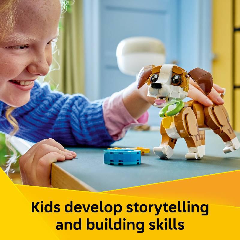 LEGO® Creator 3 in 1 Cute Animals: Playful Puppy Dog (31382) building set lets kids ages 8 and up play out fun-filled stories. This cute animal toy for girls and boys offers 3 different building options with the same set of bricks.