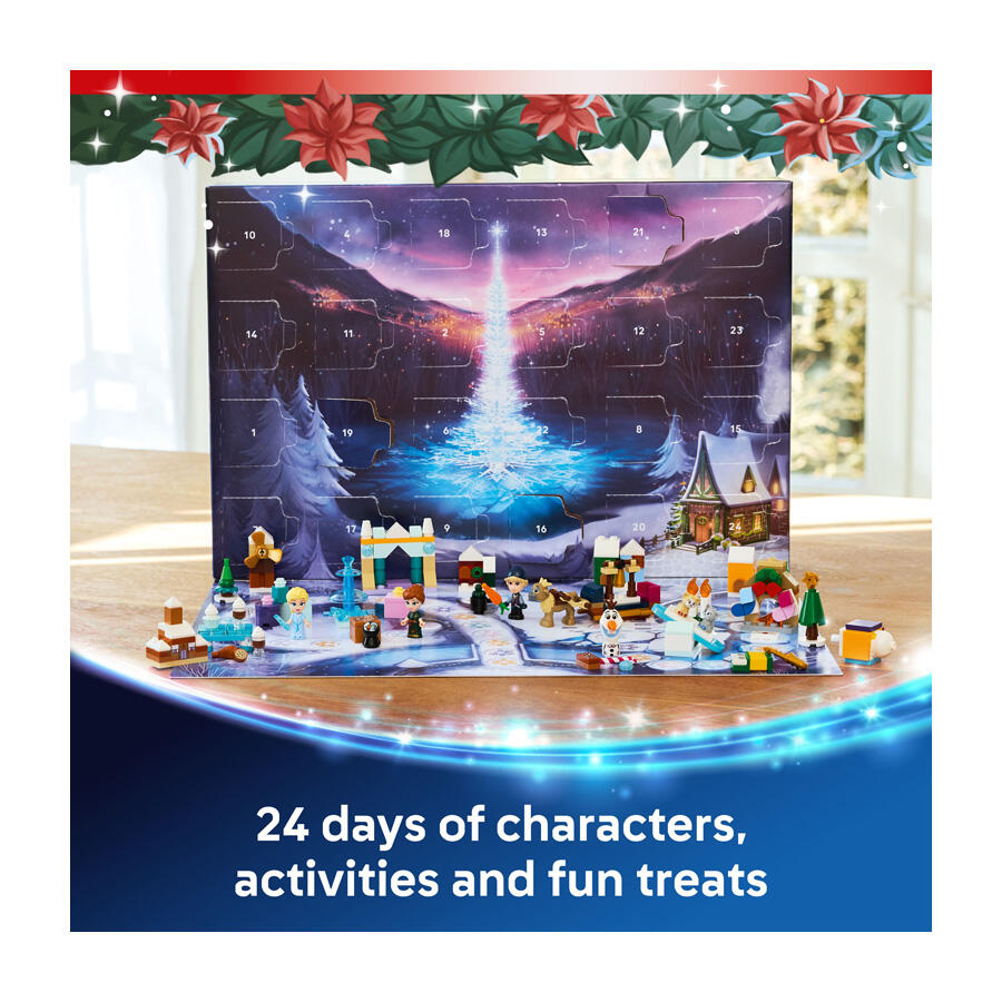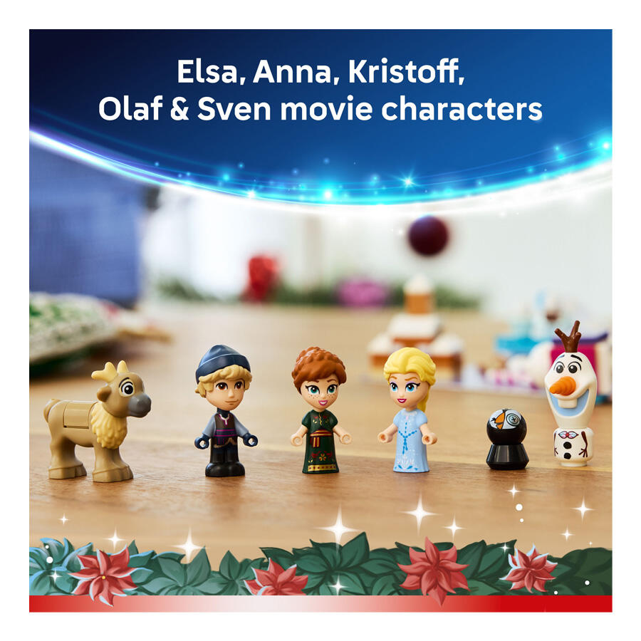 - Start the holiday countdown for girls, boys and fans aged 5 plus with an exciting Disney’s Frozen Advent Calendar 2025 (43273) building kit, packed with buildable toys. This Advent calendar for kids includes Elsa, Anna and Kristoff LEGO® ǀ Disney micro doll characters, Olaf and Sven LEGO ǀ Disney characters and 2 LEGO ǀ Disney kitten characters. Behind every door is a character or other mini build to help deliver a daily dose of magical holiday cheer. After the fun of building, the box becomes a game board that leads children on an exciting adventure with the characters to collect treasures for the holiday. Kids can experience a little Advent fun every day, and indulge their passion for Disney’s Frozen characters, LEGO creativity and the holiday season with a buildable set full of details. Once the season is over, the items in this LEGO Advent calendar building set can be added to others in the LEGO ǀ Disney range (each sold separately) to enhance and expand play.