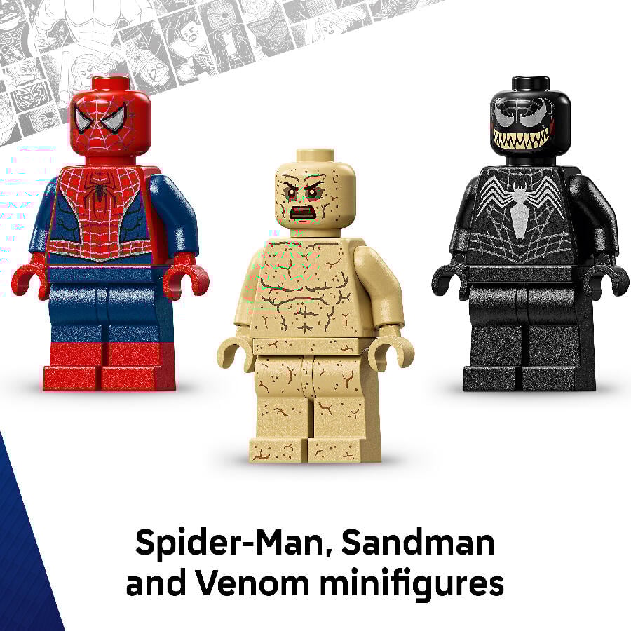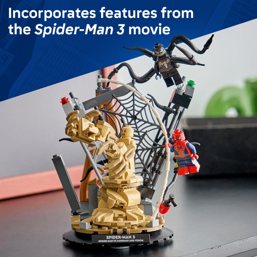 Bring Marvel Studios’ Spider-Man 3 movie to life with the LEGO® ǀ Marvel Epic Battle: Spider-Man vs. Sandman (76334) building set for kids, boys and girls ages 9 and up. It features 3 iconic minifigures – Spider-Man, Venom and Sandman – in epic role-play adventures and mega display possibilities.