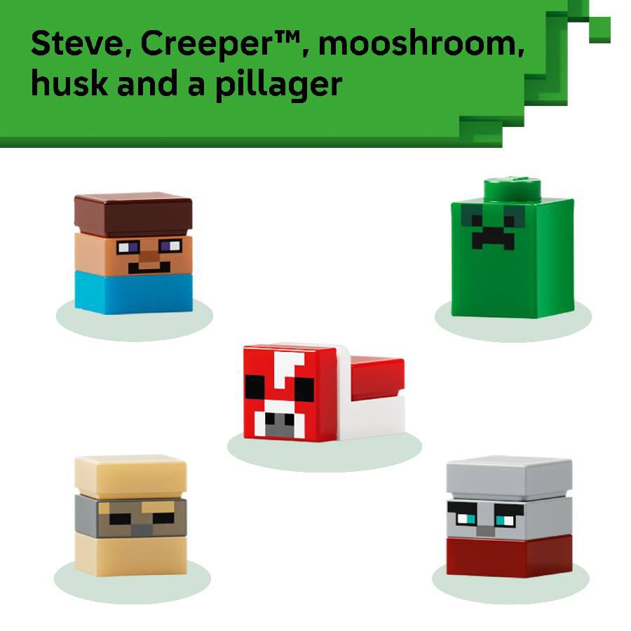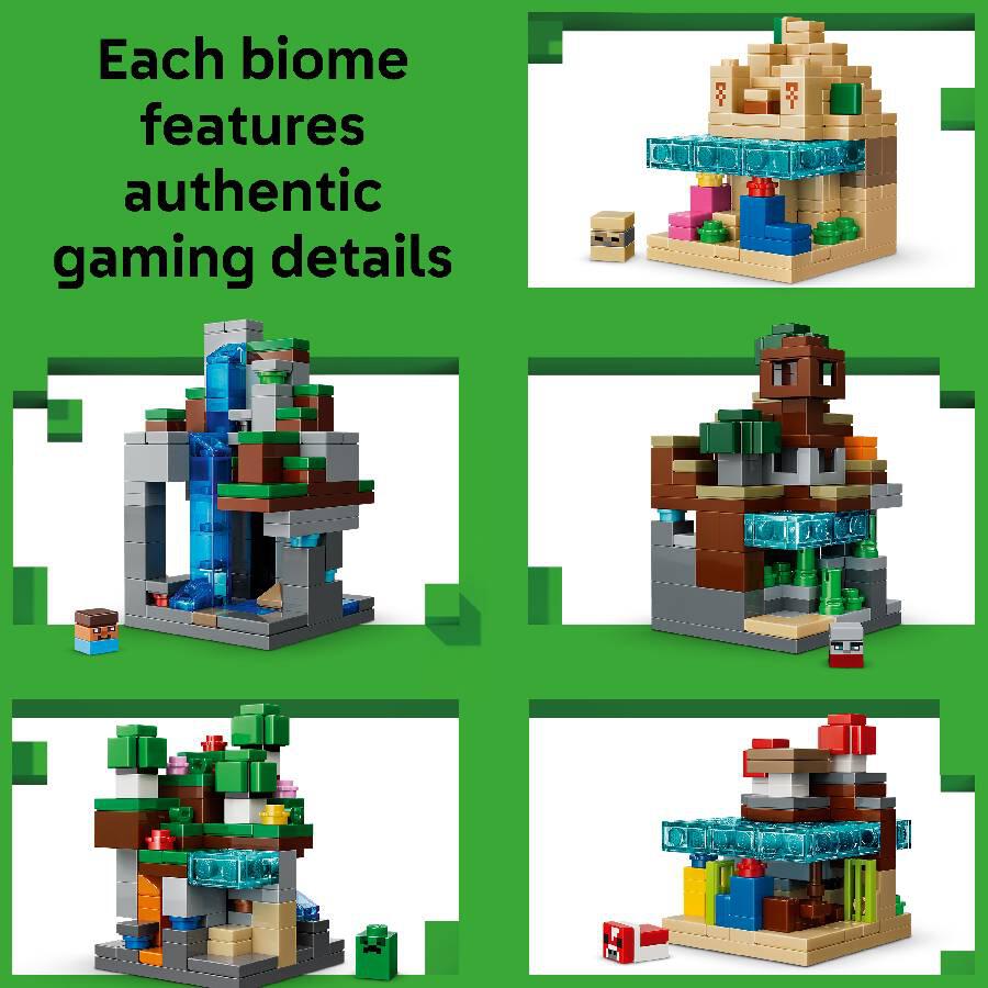 Celebrate iconic Minecraft® decor with the LEGO® Minecraft Mini Biomes (21589) building set for boys and girls 12 years old and up. Minecraft players can put their passion for the game on display for all to admire with 5 toy biomes and 5 microfigures: Steve, Creeper™, mooshroom, husk and a pillager.