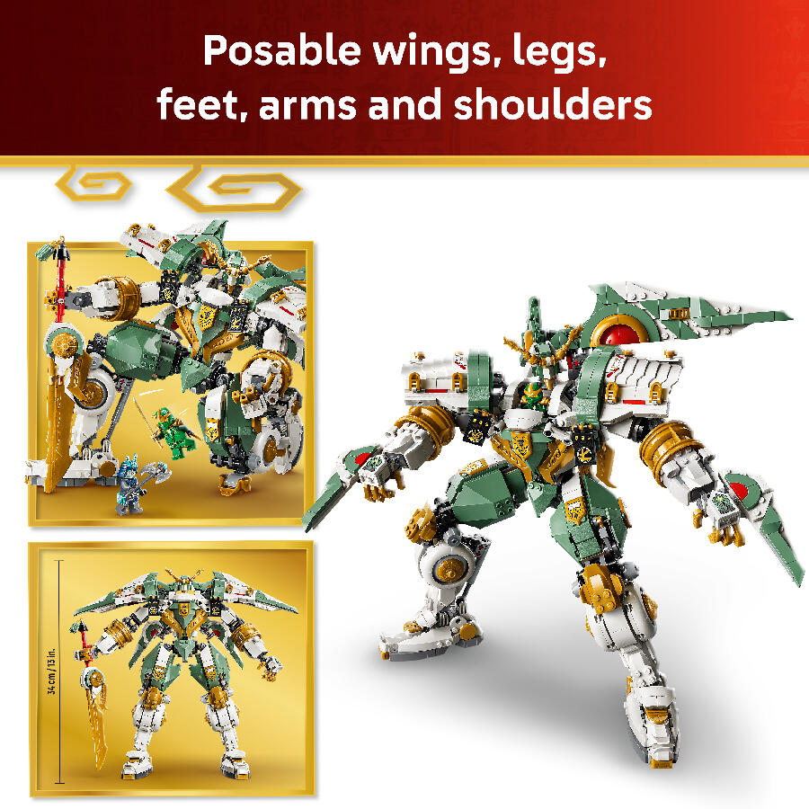- Teen boys, teen girls and nostalgic ninja fans ages 14 and up can celebrate the 15th anniversary of the LEGO NINJAGO TV show with this highly impressive and feature-packed mech toy. The LEGO NINJAGO Lloyd’s Titan Mech 15th Anniversary (71860) action figure set is an upgraded version of the fan favorite original Lloyd’s Titan Mech (70676) model. This mech toy features several posable body parts including wings, legs, feet, arms and shoulders and a cockpit for a minifigure. It also comes armed with a large sword and, for the first time ever, a large shield that can be repurposed and placed on the back as a pair of wings. The model building kit comes with 3 minifigure characters, Lloyd and Grimfax from the TV show, plus a collectible elemental Master of Ice on a stand. Ninja fans can build the playset with confidence using the LEGO Builder app – zoom, rotate in 3D and track progress with easy-to-follow digital instructions. Building set contains 1,293 pieces.