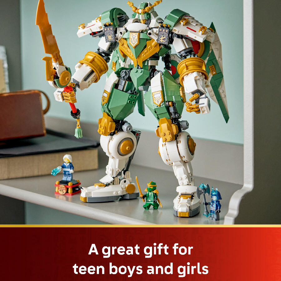 Teen boys and girls can celebrate the 15th anniversary of the LEGO® NINJAGO® TV show with this posable Lloyd’s Titan Mech toy, plus 3 minifigures.