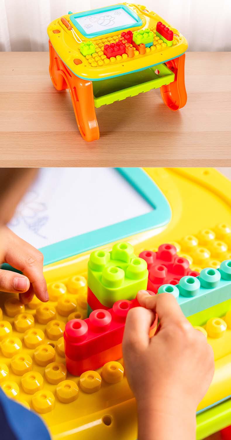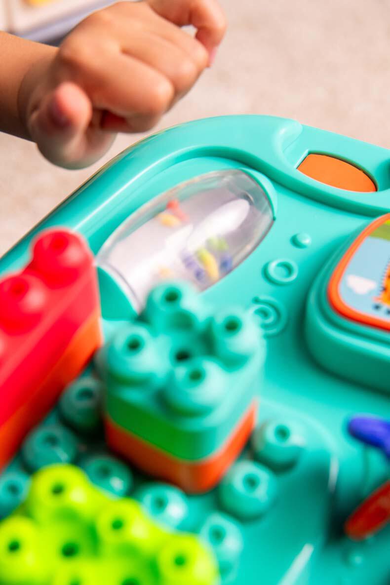 - A vibrant, interactive double-sided play table featuring a wide array of engaging activities