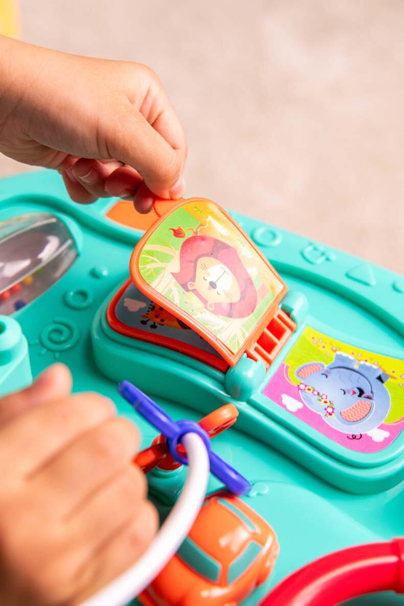 From gears to turn, a roller to spin, a steering wheel to master, and so much more to explore!