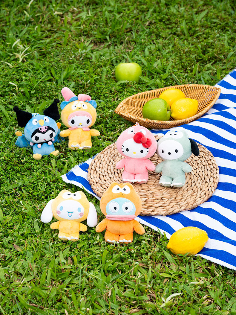 A charming collection of beloved Sanrio characters transformed into playful dinosaur-themed designs