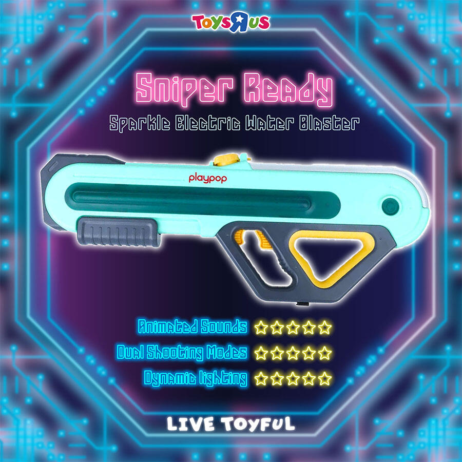 Warning! Not suitable for children under 3 years.Small parts, choking hazard.Warning! Do not aim at eyes or face.Warning! This toys produces flashes that may trigger epilepsy in sensitised individuals.Warning! Do not use close to ear. Misuse may cause damage to hearing.Warning! Long cable,strangulation hazard.Adult supervision is required.Do not immerse the product in water.Use clean and impurity free tap water.Drain the water after playing, and wipe it with a clean and soft cloth.Remove all packaging before giving this toy to children.Please retain this packaging for future reference since it contains important information.Colour, design and decorations may vary from those shown in the photographs.