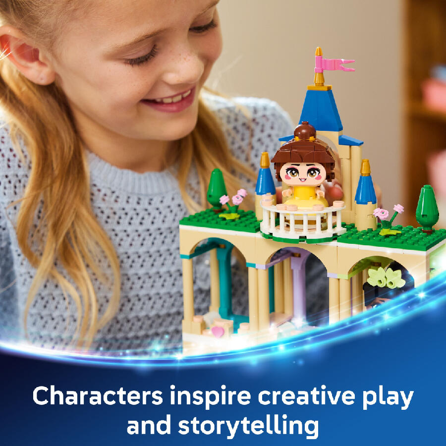 Share a love for Disney Princess characters with fans ages 5 years old and up and this LEGO® ǀ Disney Princess Mini Belle & Tiana with Castle (43291) toy building playset. The small Belle and Tiana movie characters help inspire storytelling play with the included book and spoon accessories. Each character has movable arms and can hold an accessory. The buildable castle playset features 3 levels and includes color-coordinated spaces for each character in the collectible series. The center tower has a spinning turntable to display any of the characters in the series.