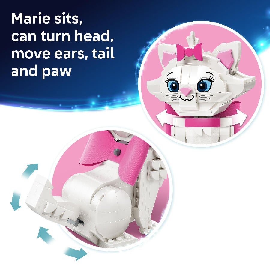 Surprise Disney movie fans, kids and animal lovers with this delightful LEGO® ǀ Disney The Aristocats Adorable Marie (43286) toy building set. Features a brick-built, posable toy cat, made for girls and boys ages 7 years old and up, for creative play and a fun room decor display. The building set also includes a brick-built gift box, small mouse, brush, fish and a pink textile bow to inspire endless stories.