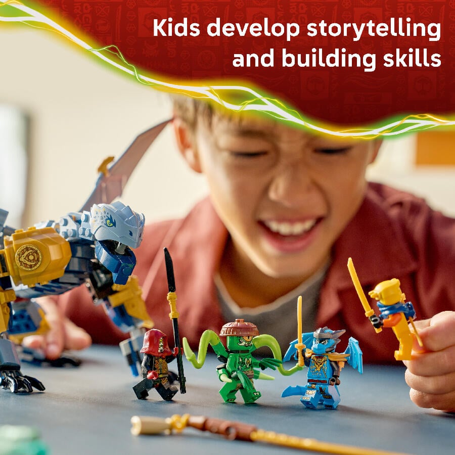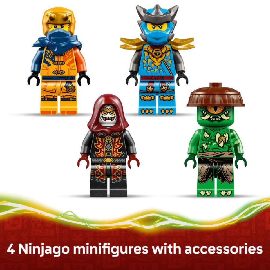 Kids can also make an exciting swap and use the weapons from the Cole’s Mission Mech & Dragon Zane (71854) set (sold separately). This LEGO dragon set comes with 4 minifigures: ninja warriors Arin and dragon form Nya and villains Mutation Monster and Loyalist.