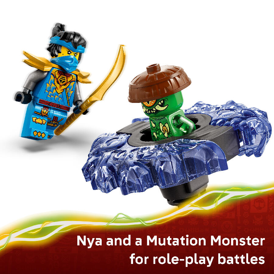 This great value small LEGO set comes with 2 minifigures: Nya with a glaive weapon accessory and the villainous Mutation Monster, who can ride inside the spinner toy. Kids enjoy countless hours of good vs. evil battles with these NINJAGO characters.
