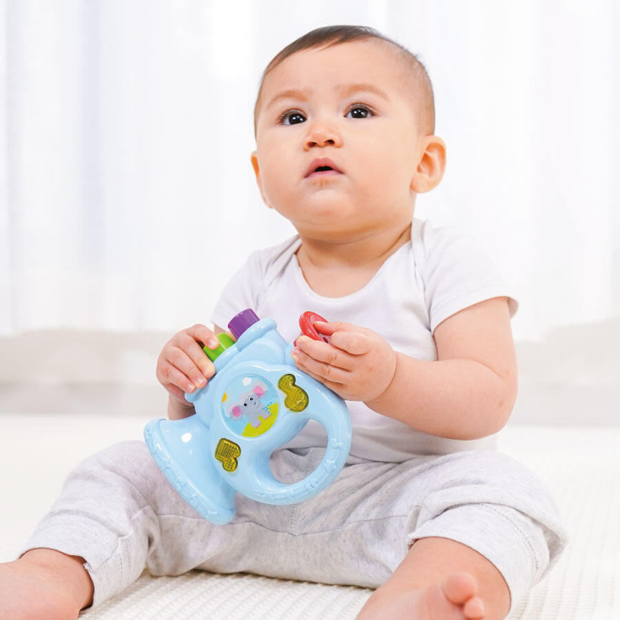 Encourage an early appreciation for music with this colourful toy trumpet that engages little ones with lights and sound while also developing essential fine motor movements. The colourful keys each produce a different sound and will engage little hands as they develop, while the songs and sounds will stimulate an interactive appreciation and understanding of music and sound.